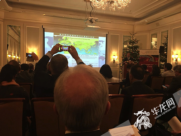 在杜塞尔多夫举行的重庆经济产业推介会上,人气更是爆棚,德国汽车销售商、进出口商及代理商、物流货代商等接近100家企业到场交流,会议室挤满了人,尤其是当重庆市商务委副主任彭和良以及沙坪坝区政府副区长、西部物流园管委会主任户邑等人在介绍重庆经济发展和内陆开放相关情况时,屏幕上播放的PPT备受欢迎,大家纷纷拿出手机拍照记录。