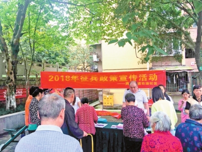 本报讯(记者 曹丽华 通讯员幸坤)近日,两路街道石油社区在汉渝路101号小区楼院里开展了2018年征兵政策宣传活动,社区工作人员、网格长、网格员及部分居民参加活动。