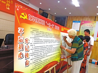 本报讯(记者 周新宇 通讯员 朱晓燕)6月26日,龙山街道龙华社区党委通过开展走访、微信征集和现场活动等形式,组织百名党员联名签下倡议书,共同发出了“当好政治家长,做家庭思想文化建设风向标和顶梁柱”的“一长一柱”党员家风建设倡议。