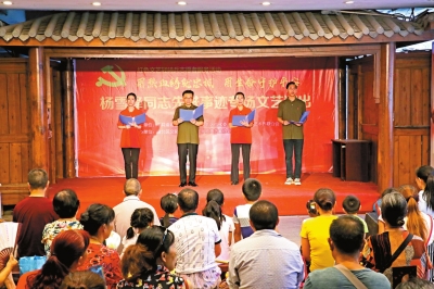 本报讯(记者 周新宇)7月21日,红色文艺轻骑兵志愿者服务活动之杨雪峰同志先进事迹专场文艺演出在渝北区道德讲堂总堂上演。演出通过相声、故事、配乐诗朗诵和歌曲等形式展现了杨雪峰同志的先进事迹,吸引了不少群众聆听杨雪峰用生命谱写的新时代平安守护者的英雄赞歌。